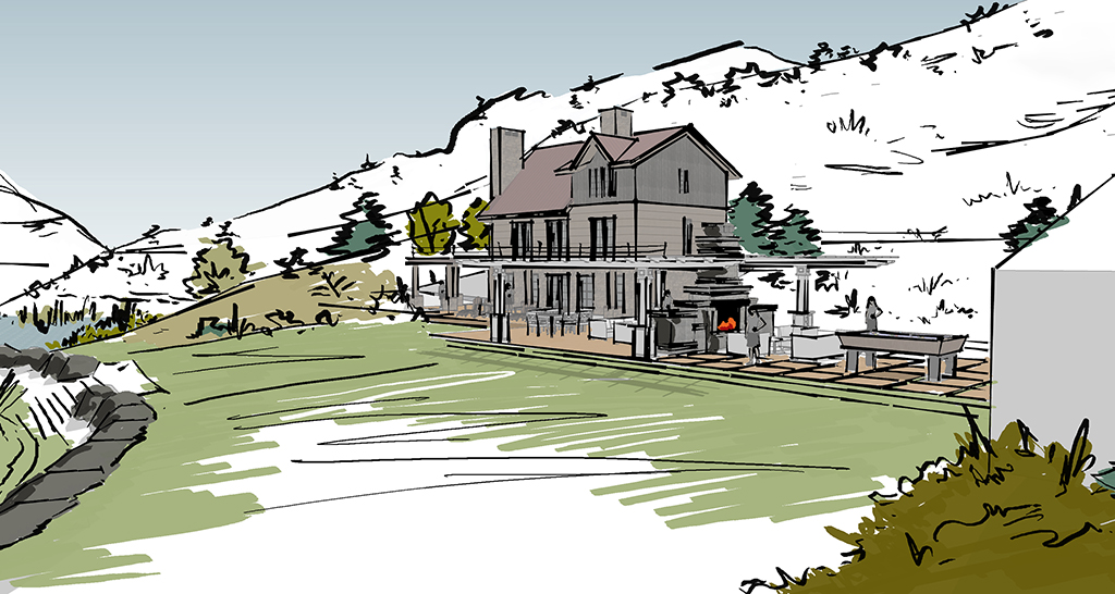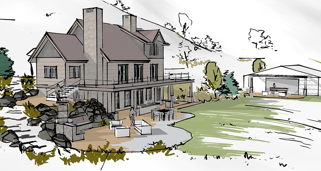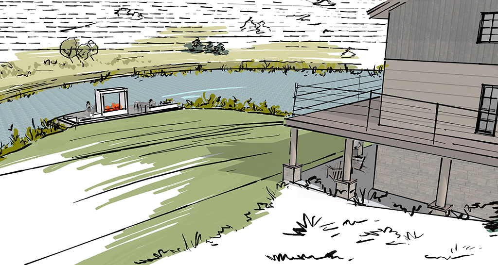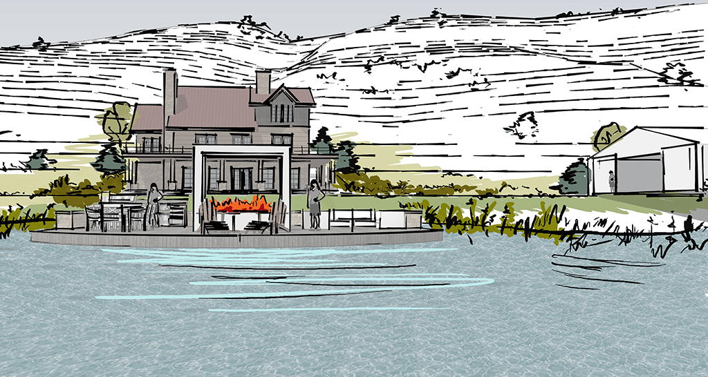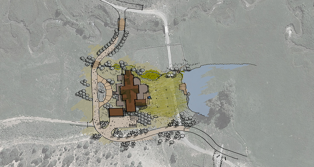 Covering 2,000 acres in northern Colorado, the Miller Creek Ranch contains two spring filled ponds, both situated around two homes. Connect One Design completed master planning for the valley floor portion of the property, expanding the ponds to hold more capacity as a part of the Colorado ‘use it or lose it’ water policy. To help increase interaction with the water, Connect One Design used expanded outdoor terraces, docks, redirected driveways and front doors to the houses, retaining walls, waterfalls, diverted streams, vehicle and pedestrian bridges, and large-scale grading to tie homes to their natural water features. Connect one Design also worked with the Army Core of Engineers and the Colorado Parks and Wildlife Department to carefully repair and stabilize eroding banks of an existing meandering river.